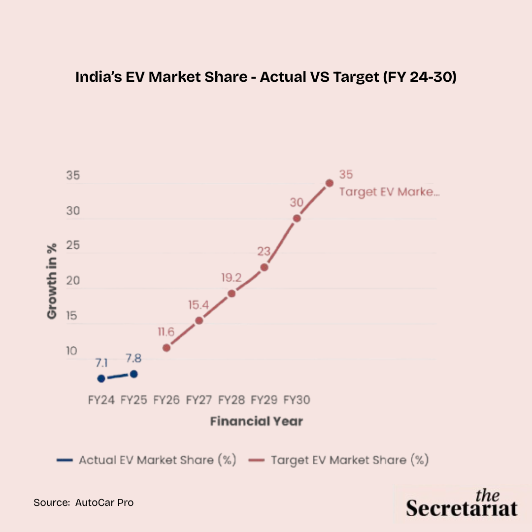 Despite the growth in the Indian EV market, the pace remains far off the ambitious 2030 targets. In FY25, EVs accounted for 7.8 per cent of the total vehicle sales, which is a modest increase from 7.1 per cent in FY24. It underscores a slow adoption curve, especially considering the scale needed to meet climate and mobility goals.