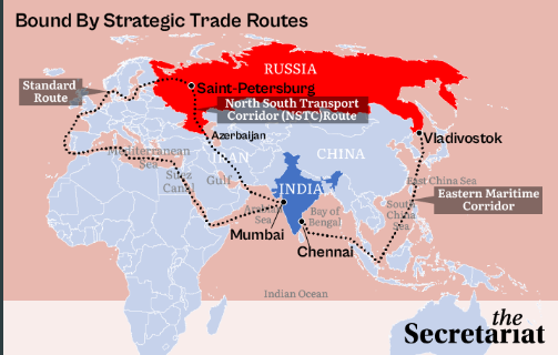 Both India and Russia are also anxious to establish strategic trade corridors that can diversify trade and increase integration between the two nations and vital central Asia states. The immediate trigger for activating the North-South corridor – which will connect India’s port cities with Chabahar in Iran and from thereon (through near-Asian and Central Asian states) to St Petersburg in Russia – comes from China running a trial goods train from X’ian in its Shaanxi province to Azerbaijan via Kazakhstan.