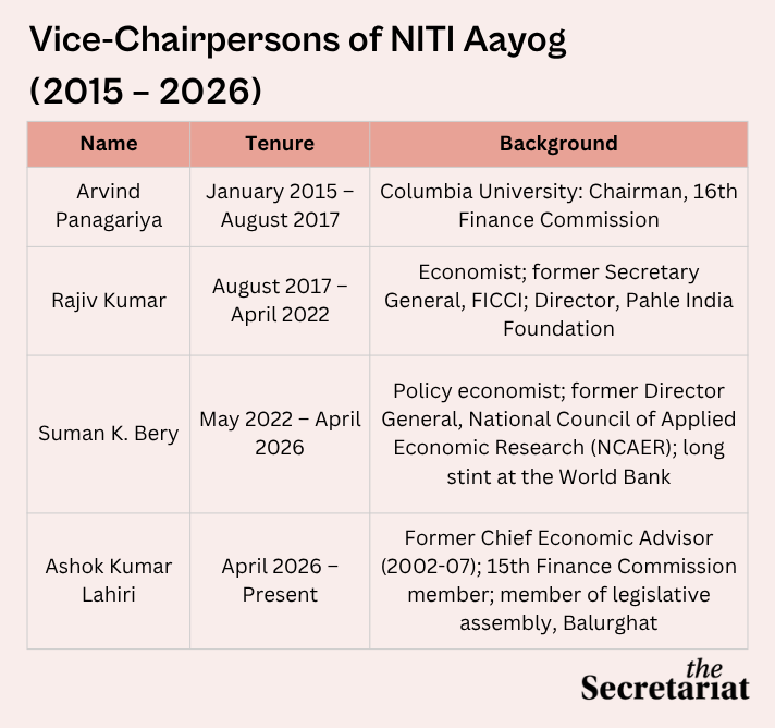 Lahiri will be the fourth Vice-Chairman of Niti Aayog.