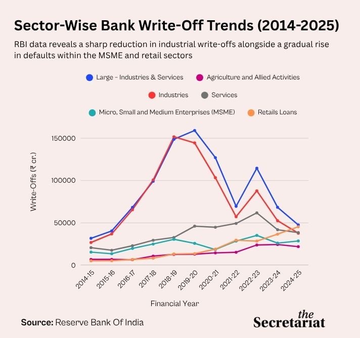 According to government data, in the past decade, Indian banks have written off about ₹9.75 lakh crore in loans – most of which account for large corporates, since the latter borrow significantly larger sums, as compared to retail or agricultural borrowers.